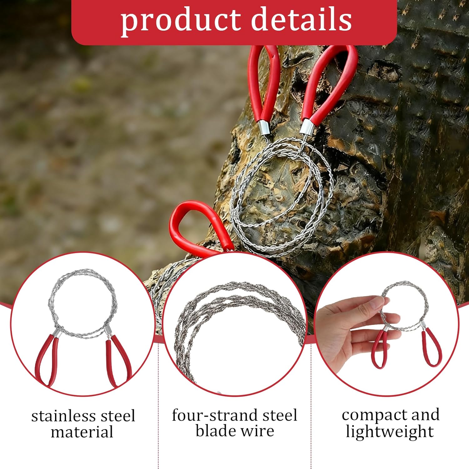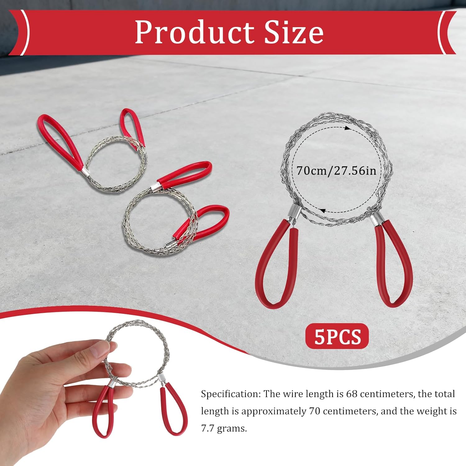 Product Introduction:Boost your outdoor preparedness with this 5PC red stainless steel cable saw set! Tailored for camping, hiking, and hunting, these metal wire saws are must – have emergency tools for cutting ropes, wood, or PVC cutting wire. Compact, portable, and easy to deploy—perfect for adventurers, preppers, and outdoor enthusiasts.