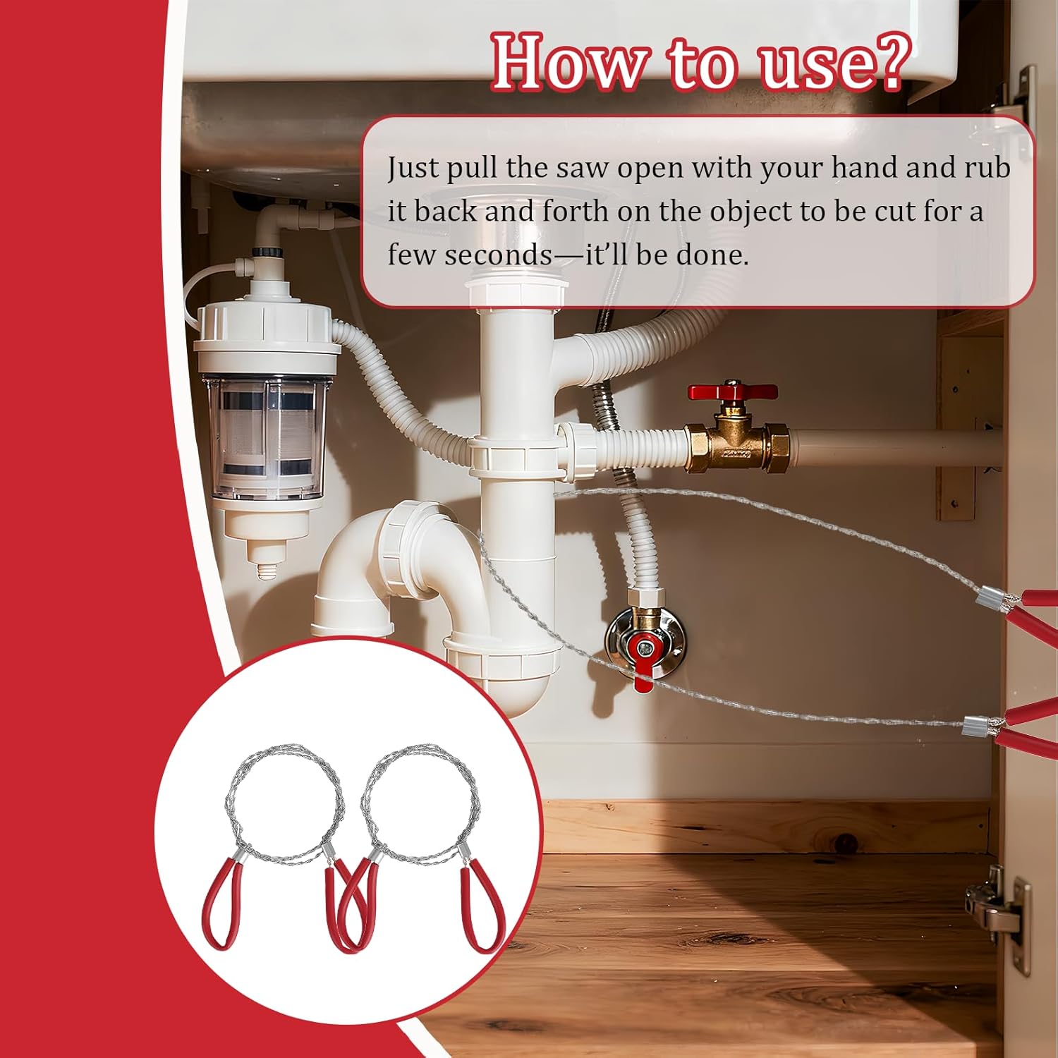 Effortless Operation:Loop the cable around your target, grip the handles, and pull—no expertise needed. The sharp, flexible wire slices through wood, PVC, or rope smoothly. Ideal for high limb rope saw tasks or emergency cutting—simplify tough outdoor jobs with ease.
